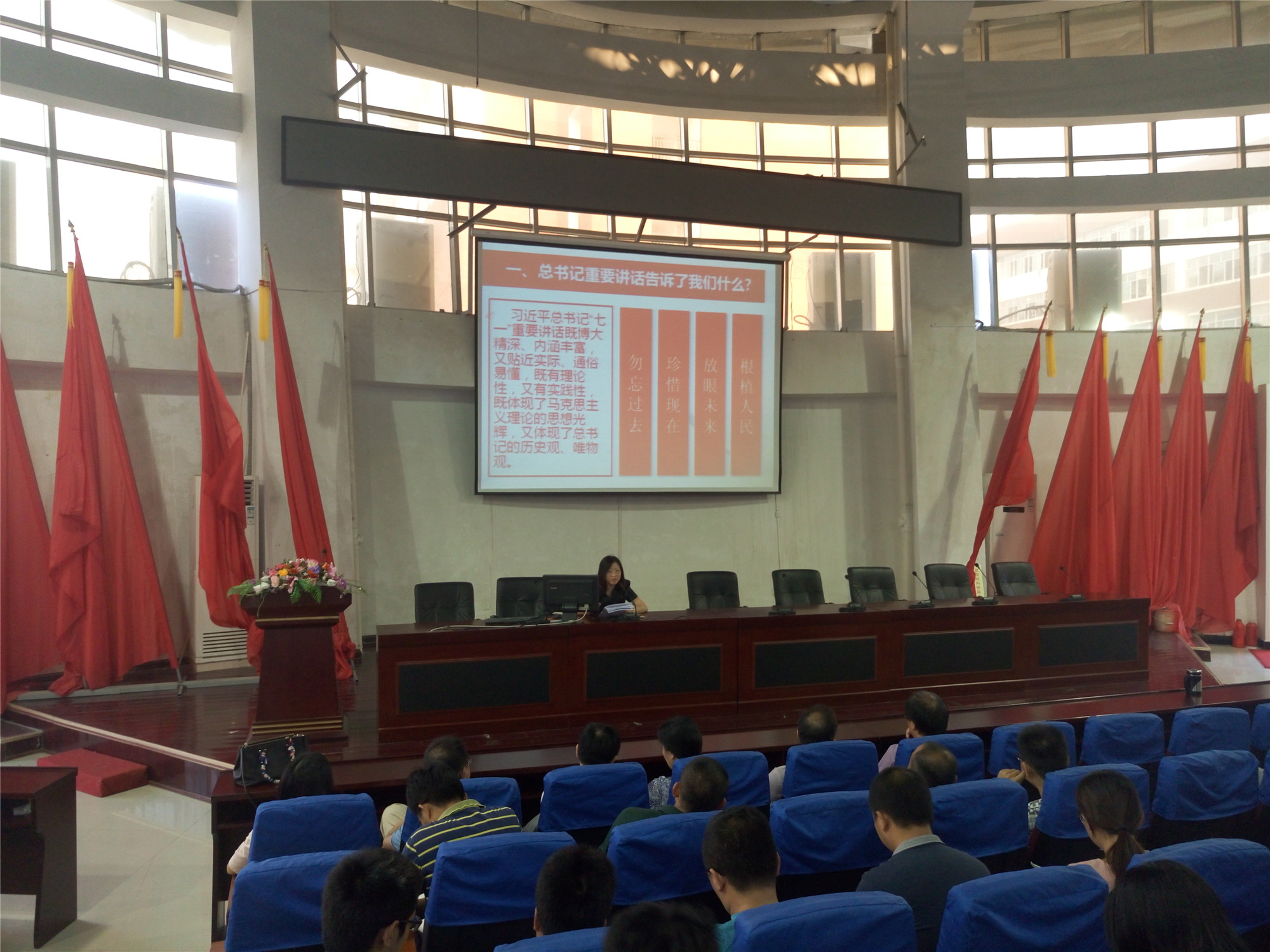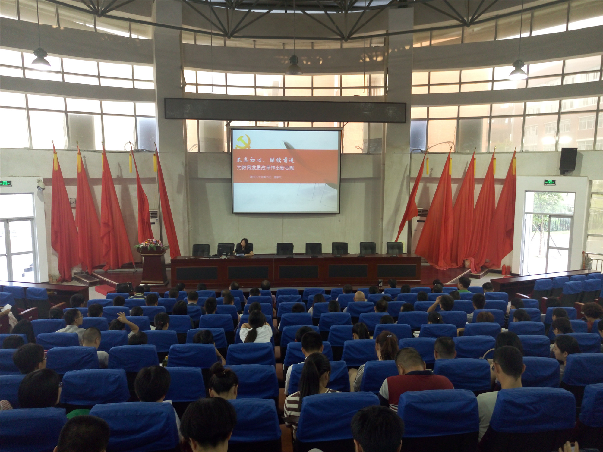 9月19日,莆田五中党委举行专题党课,学习习近平总书记“七一”重要讲话。