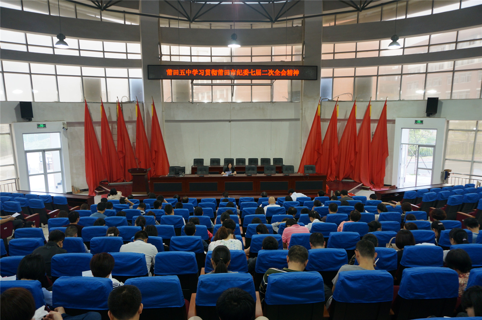 4月17日下午,莆田五中党委召开全体党员专题学习会议,黄家红书记传达莆田市纪委七届二次全体会议精神。
