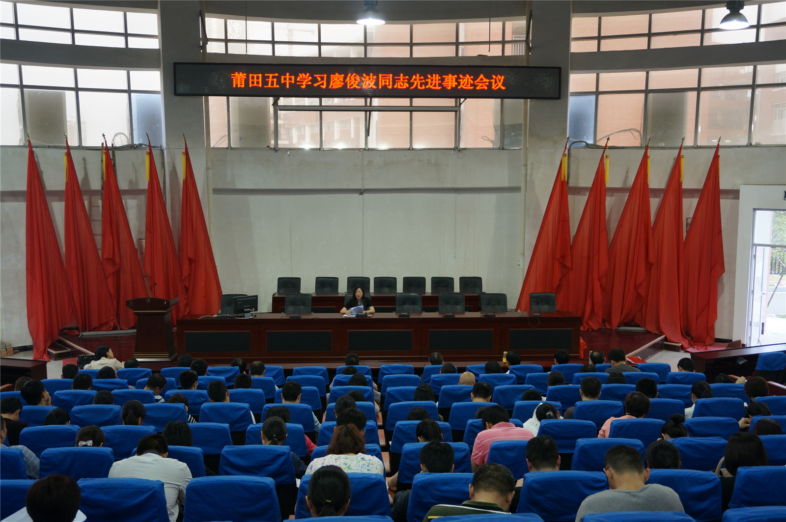 4月17日,莆田五中党委召开全体党员大会,学习廖俊波同志的崇高精神。会上,黄家红书记传达了《中共福建省委关于追授廖俊波同志“全省优秀共产党员”称号并开展向廖俊波同志学习活动的决定》,号召全体党员从廖俊波同志的工作生活点滴中,学习他崇高的精神,学习他信念坚定、对党忠诚的政治品质,心系群众、勤政为民的公仆情怀,敢于担当、苦干实干的务实作风,无私奉献、忘我工作的敬业精神,廉洁奉公、干净做事的高尚情怀。