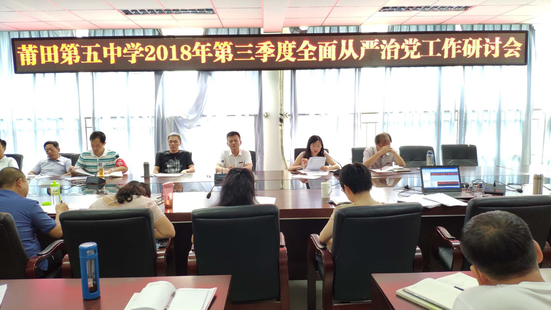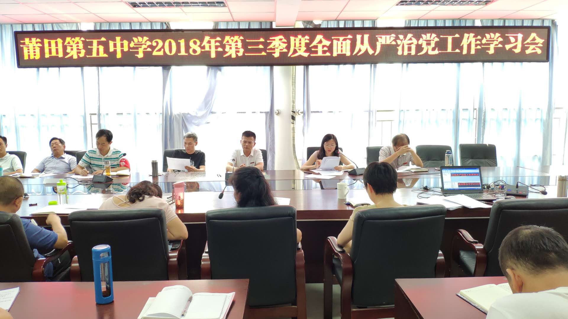 全体行政干部还参加了莆田五中第三季度全面从严治党工作学习会,由傅锦国书记带领大家共同学习了《中国共产党纪律处分条例》修订部分、《行政干部应知应会100题》(中共莆田市城厢区委宣传部2018年8月)。
