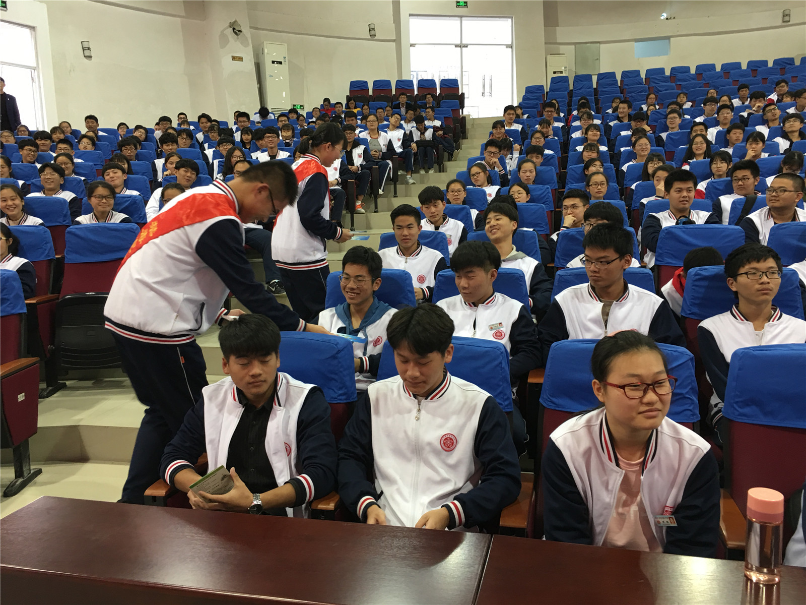 报告会结束后,我校学生禁毒志愿者还为同学们发放禁毒宣传资料。最后,德育处主任尤丽华老师代表学校感谢曾警官做的精彩报告,再次明确了本次活动的重大意义,呼吁同学们树立禁毒意识,养成健康阳光的生活方式,珍爱生命,远离毒品!